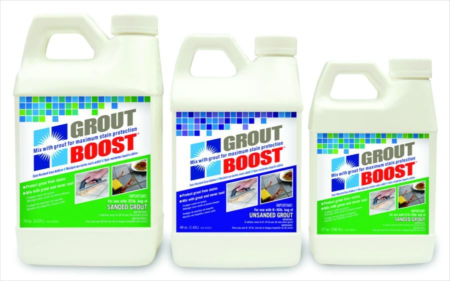 In the MixThink of Grout Boost as protection in a bottle. Instead of water, mix the product with powdered grout for integrated permanent resistance to water- and oil-based stains. It also eliminates the need for sealing. Cost: $21 for a 27 oz. bottle. Specialty Construction Brands. 866-614-7688. www.groutboost.com.