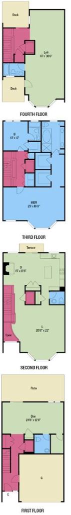 The five floor plans range from 17 feet wide to a commodious 28 feet across. They all include second-story rear terraces, which eventually were allowed to be counted as open space. The copper-clad bays on the exterior caught the city’s attention too. They project 3 feet from the building and over the property line. That meant they had to be at least 10 feet above the sidewalk and required some creative framing to raise the floor of the bays a few more inches.