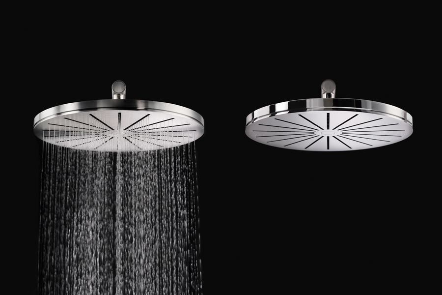 VOLA launched a first in its bath-products series with a round showerhead designed in the style of Arne Jacobsen’s 1971 banker’s clock. The showerhead joins the company’s Round Series of bathroom products, which plays on circular geometries by obscuring the technical functionalities of the line’s toilet-paper holder and trashcan within a streamlined, minimalist aesthetic. The showerhead is offered in multiple water flows to meet 2.25 gallons per minute and can be ceiling or wall-mounted. Finishes include brushed stainless or chrome. VOLA, 800.351.0038; www.vola.com.