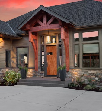 Simpson Door recently showed off some new innovations for transitional spaces, including oversized doorways reaching heights of 12 feet and widths of 10 feet. The large doors can be configured from any species of wood and will fit in with any design scheme. They can be mounted on barn doorâstyle track hardware or swing on a pivot. The doors come in both exterior and interior configurations. simpsondoor.com