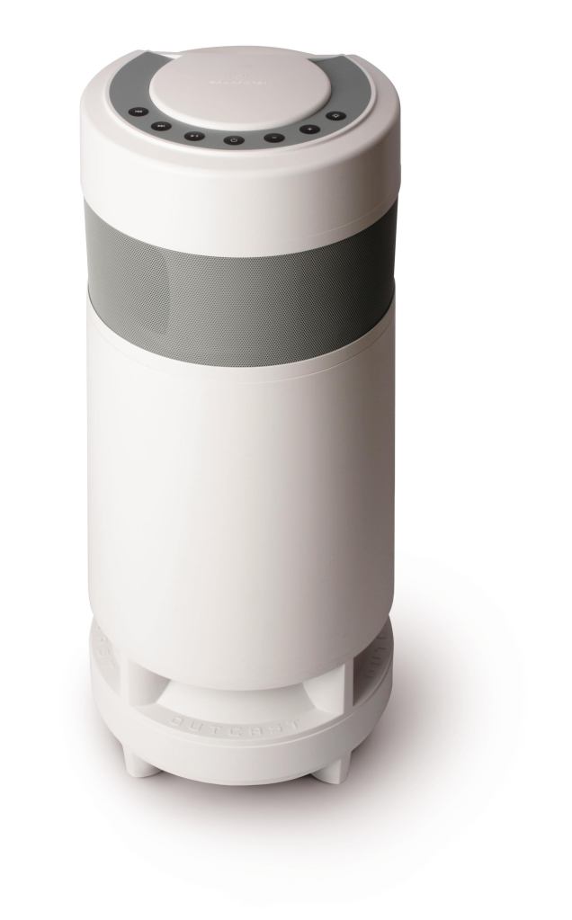 The wireless OutCast 3.4 speaker system channels music from up to three sources into four separate rooms simultaneously, indoors or out. Play selections from an iPod, iPhone, MP3, laptop, or the Internet with a wireless broadcast range of up to 300 feet, uninhibited by walls, floors, doors, or ceilings. An easy-to-use control panel is backlit, and the battery lasts 10 to 20 hours, depending on the power level. Soundcast Systems. 619.591.0126. www.soundcastsystems.com.