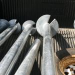 Typical piers have a 7-foot shaft with a helical bearing plate welded to the end and a cap on top that attaches to the framing. Most piers intended for residential use are hot-dipped galvanized steel. If the soil is particularly corrosive, sacrificial anodes (similar to those used to protect underground LPG tanks) can be added. In most commercial and industrial applications, however, the piers aren’t even galvanized.