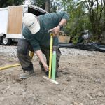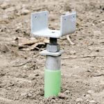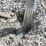 Load-testing a helical pile is far simpler than it sounds. The height of the pile above grade is measured. Next, a cap is inserted into the pile to protect its top. This cap is slammed five times with a sledgehammer, and the pile’s height is measured again. The sledge’s weight is specific to the size of the pile — a heavier hammer is used with bigger piles. The amount that the pile sinks indicates the soil bearing capacity, which an engineer will verify. The dynamic loading imposed by an impact load is surprisingly large and correlates to the static load a pile can handle.