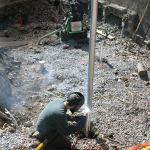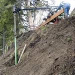Rocks. Normally, we just power through loose rock basketball-size and smaller. The installation machine generates sufficient torque for the helix to push rocks out of the way as it turns. Sometimes, the installer can actually steer the helix around a rock, then use the machine’s boom to pull the pier back into plumb.