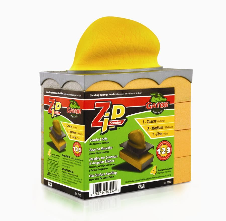 Sanding can be hard on the hands, but the Zip Sponge Holder can help. The product features an ergonomic, soft plastic holder that grips a standard-sized sponge to keep hands safe from scrapes. It can be used for wet or dry sanding and comes packaged with four sanding sponges. Cost: $9.99. Ali Industries. 800-255-4748. www.zipsander.com.