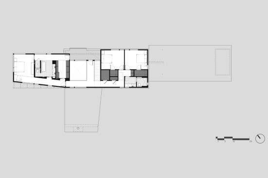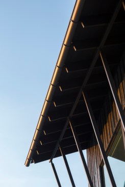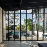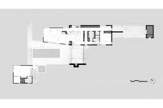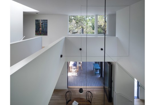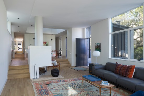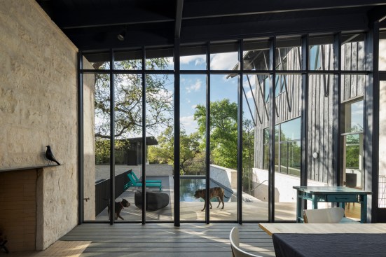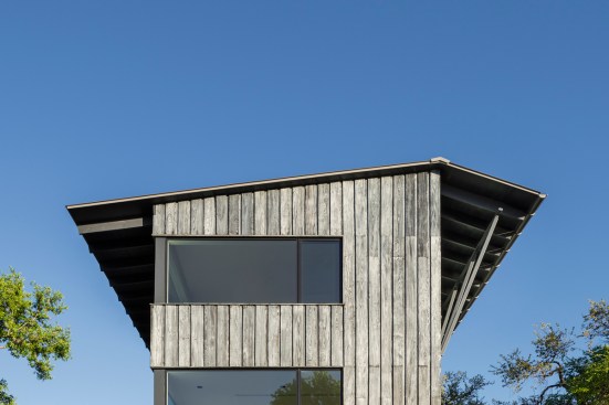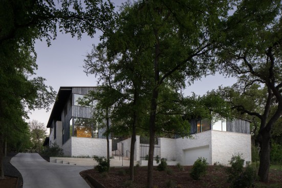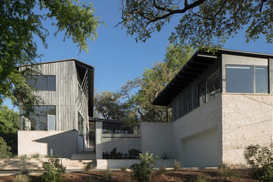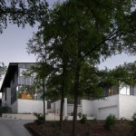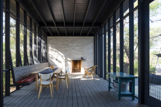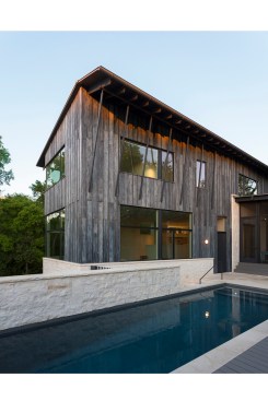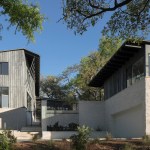 The result is a composition of buildings which reinforce a camp-like aesthetic gathered around heritage live oaks. Both modern and rustic the house celebrates the “spirit of its place.”