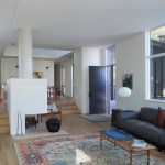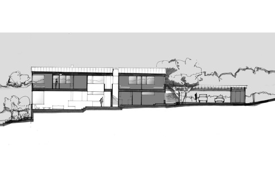 Solving simultaneously the response to site and client: he, a musician who wanted a modern box with views to downtown and she, a yoga practicing mid-wife who wanted a barn with animals, the solution embraces and exploits the depth and slope of the land.