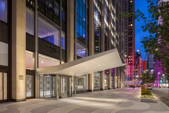 Adhering to the intentions of the original design, upgrades in the landmarked lobby involve selective replacement and restoration of the existing glass ceiling, stone floors, and marble walls. Improvements to the storefront enhance the relationship of the building to the plaza and its surroundings. An iconic new canopy over the existing 51st Street passage reestablishes access to the plaza while providing exciting retail opportunities.