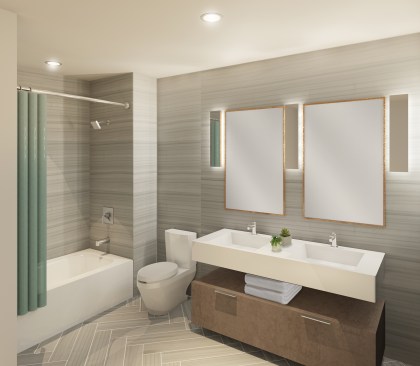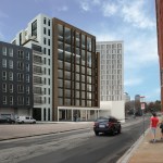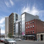 This project site is in a vibrant section of the city which enjoys great access to transit and existing urban amenities. The 11-story façade meets the ground and connects to the streetscape with an outdoor dining area and glass storefront, allowing for an activated presence off the sidewalk. While its height transitions between the neighboring properties – we’ve felt the necessity to create a strong singular image on Broadway.
