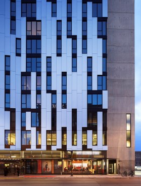 As part of the commitment of the arts to this neighborhood, the project incorporates a 92’ tall art installation on the west facade, curated by the design team to initiate a dialogue between the architecture, the art and its community. Together, the building and the installation further the development of a vibrant cultural corridor along Division and Milwaukee.