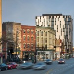 1611 W Division is designed to meet the needs of a progressive, active and mobile community. Situated 300 feet from the Blue Line train entrance and Polonia triangle, the project is dedicated to reducing traffic congestion and air pollution in its outreach to mass transit users, bicyclists and pedestrians. The 125,000sf, 11 story building includes 99 mixed-income apartments, second floor offices, ground floor retail and zero parking for building residents.