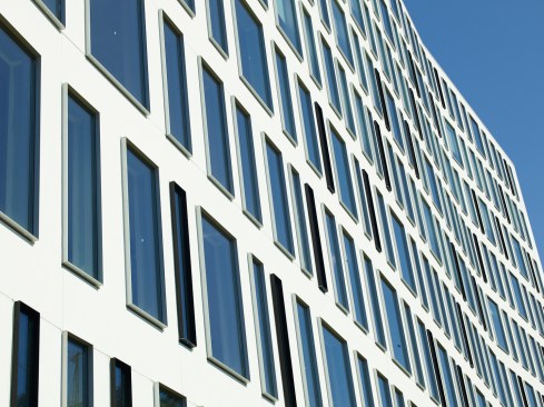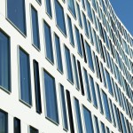 The patterning of the tower fenestration was inspired by the rustic weave found in natural fabrics, such as linen, flax or silk—irregularities that contribute to its relaxed, natural feel. Rather than employ ribbon windows found on so many office buildings, glazing is composed of five distinct modules. A system of ten-foot-wide window and precast panel modules are offset and rotated horizontally and vertically to create the varied window layout. White or black window frames create an additional layer of visual texture, which is revealed as one approaches the building. An additional benefit of the atypical window module is that it translates into a wide variety of room sizes, providing more flexibility for tenants. Inside, the unique “side-core” design moves the elevator and service functions from the middle of the floor plate to the edge, thereby increasing the efficiency and flexibility of the large floor plates. The building is LEED Platinum certified.