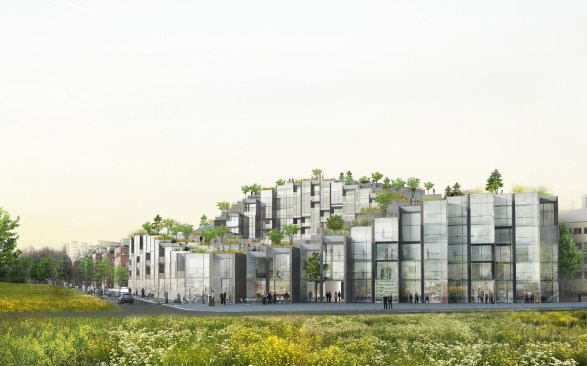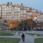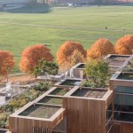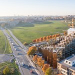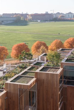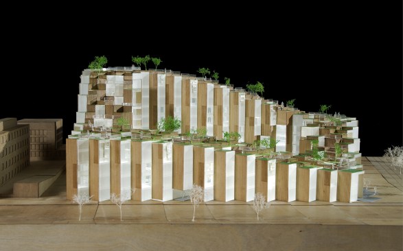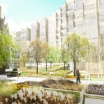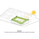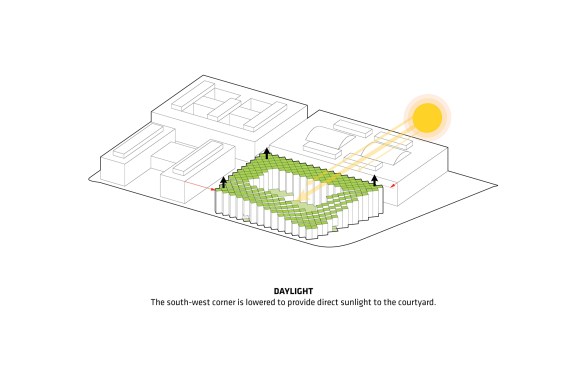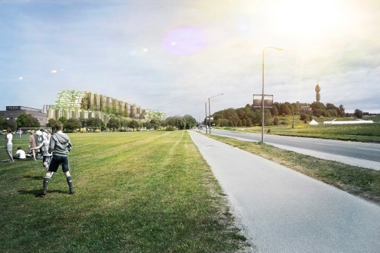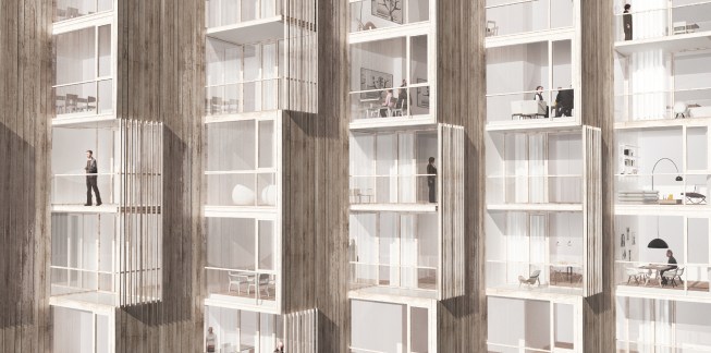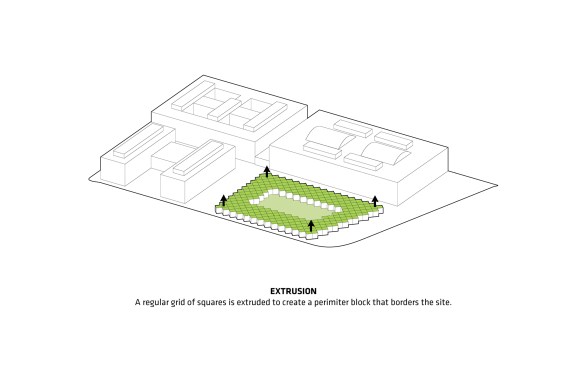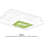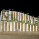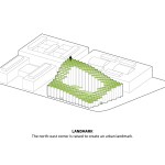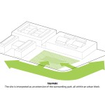 Located on the edge of Gärdet, a treasured national park, Kullen makes conscious decisions to provide a sensitive, respectful form while allowing the same choices to simultaneously manifest as exceptional residences with spectacular views. In direct response to the context, the northwest and southeast corners take the heights of their immediate neighbors; while the northeast corner, farthest from the park and nominally with the worst view, is pulled upwards to grant it the most spectacular views of park and port. The southwest point of the building extends farthest into Gärdet; and to create a humane edge between building and nature, is pushed down to the lowest profile, transforming it into a public platform with a 270 degree view of parkscape and simultaneously freeing the majority of the residential units to views of the park. The same move also ensures that the central courtyard will always receive copious amounts of sunlight. In further deference to Gärdet, the massing is visually reduced through a language of pixels, scaled to the human form. This manipulation not only allows for a more organic expression, perfectly reflecting the surrounding landscape, but also provides a way to accomplish the building topography in a controlled and inexpensive way through the use of prefabricated units of standardized sizes.