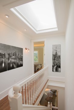 Every room now has access to a window or skylight, creating sight lines and a sense of connection throughout. Hill uncovered a partially blocked skylight in the main stairwell and added another skylight on the second level.