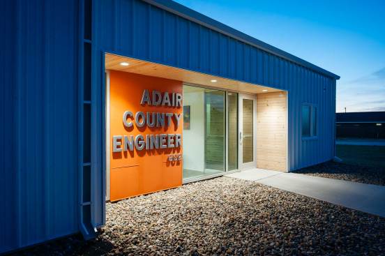 The Adair County Engineer needed additional office space; this goal required assembling a simple program within an unadorned shell that formally referenced the existing structures on site.