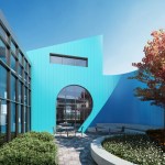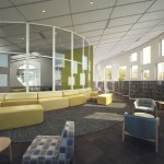 KOO is designing a 40,000 square foot multi-use facility that includes a Chicago Public Library, child care center, and community meeting space in the Altgeld Gardens public housing development. Sited at the ‘town center’ of Altgeld Gardens, the building’s curvilinear perimeter echoes the arced forms of the adjacent, mid-century Keck and Keck retail building, the rounded shapes of the existing town center plaza, and the curved streets of the surrounding neighborhood. The masonry exterior follows the material logic of the development and also is a continuous ribbon, intended to be experienced from all sides so there is no front or back to the building. Interior courts create protected, defensible spaces for the users and also allow natural light and ventilation to be available within the wide footprint of the building. This design embodies the client’s ongoing strategies to improve non-residential services and amenities within the Altgeld Gardens/Murray Homes community. The library program reflects 21st Century information needs and includes areas for children, teens, and adults with a “YOUmedia” digital lab and maker lab. The program for the child care center was developed with the nonprofit community based organization that will provide much needed services to the family-oriented neighborhood. The building and site design pursues a Gold Certification under LEED Version 4 BD+C through sustainable strategies such as a new storm water management system, heat island reduction, enhanced building commissioning, and many energy conservation measures. The building systems are designed to be ‘net-zero ready’ and will feature a ground-source geothermal exchange as the main HVAC system. The building envelop exceeds energy code minimum requirements as a critical component of energy reduction. Quality views from all interior spaces exterior areas improve the everyday experiences of the building users, and allow for day lighting to be prominent in most spaces also reducing lighting loads.