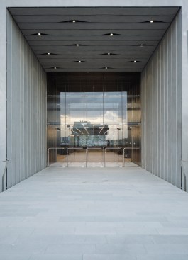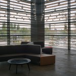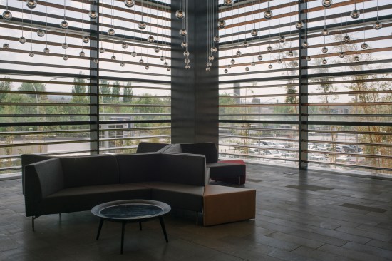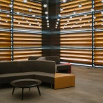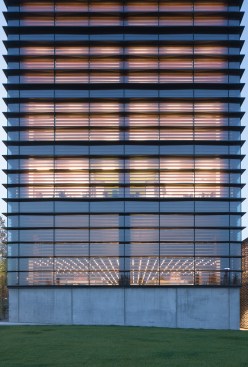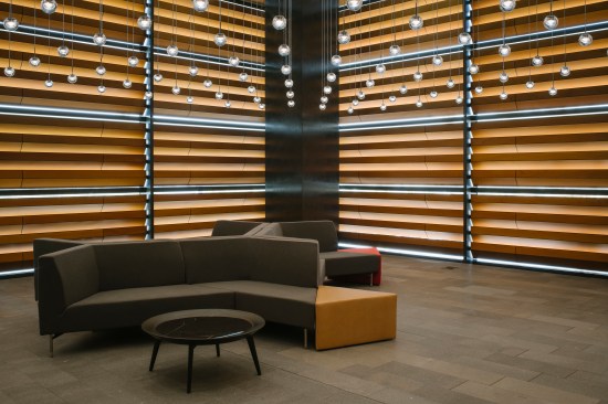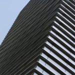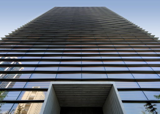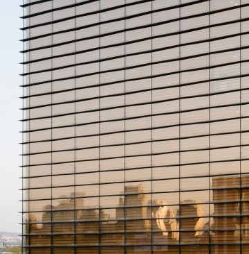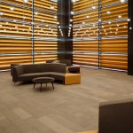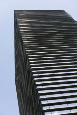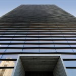 The Tower’s innovative cladding system employs horizontal exterior mullions with a variable section, to maximize year-round operational efficiency. Their subtly inflected profiles successively shift as they wrap the Tower, creating a pattern that changes depending on the viewer’s perspective. Interior wood louvers integral to the curtain wall—mechanically operated but with manual overrides—give tenants individual daylight control within their workspace. They mitigate glare, admit indirect light, and maintain views, while introducing wood’s warm, textural qualities to the office environment.