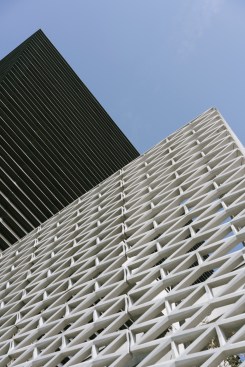 The outcome is a kinetic facade system that is environmentally responsive, satisfies the workplace preferences of a demanding tenant cohort, and enhances the project’s architectural impact and influence in a newly expanding area of the city. Over the course of the day and as one moves around the building, this innovative wall assembly produces a transformative effect, drawing the observer in and evoking curiosity. The sculptural exterior mullions create different patterns, depending on the sun’s position and the pedestrian’s perspective. As wood louvers open or close according to interior needs, the Tower itself appears either permeable or reflective, revealing patterns of use and activity within.