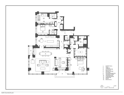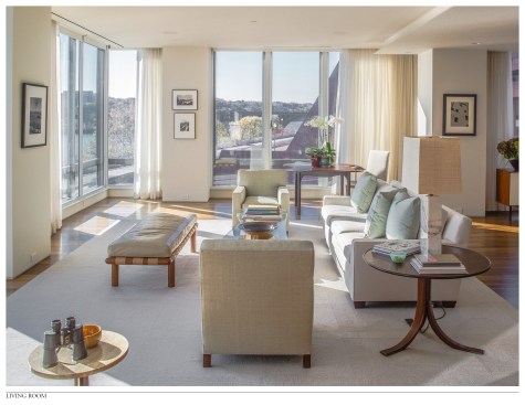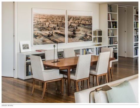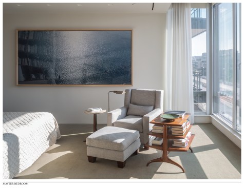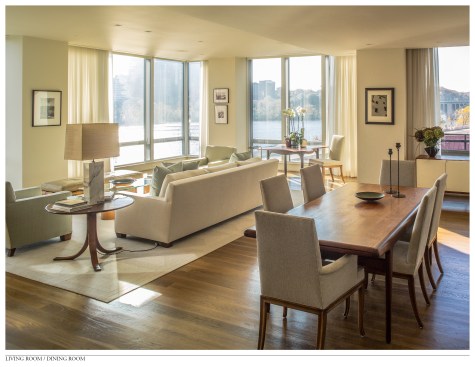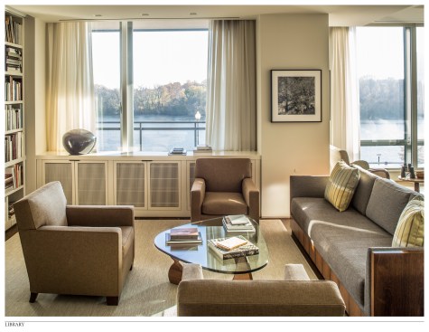 This project is the total renovation of a 3,300 sf waterfront apartment for a photographer/ art collector. The design of this residence is based on the response to the following two issues: SITE / VIEW Located on an upper floor of a condominium building in Georgetown, this apartment offers unobtrusive views of the Potomac River. To maximize this potential, we removed many interior walls to combine the living room, dining room, hall, and library into one large flexible space. Doors from the kitchen, hall and master bedroom were designed as full-height slabs that, when open, are flush with the deep jambs into this new room. All existing trim was removed and finishes were simplifies, reinforcing this sense of openness. Furniture was selected to have simple lines and was located as to not detract from the view across the room. OWNER’S PHOTOGRAPHY All walls that did not contribute to the view were rationalized to allow ample space for the owner’s photography collection. A significant number of built-in cabinets were also added to house her photography library. The ceiling plane of the apartment was manipulated to allow for recessed and cove lighting in response to the location and size of the photographs. The various ceiling heights also allowed for the addition of window treatment pockets and the design of a quieter, more efficient HVAC system.