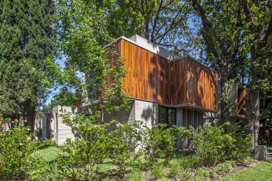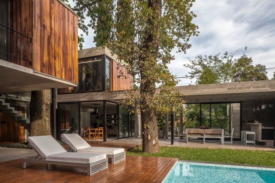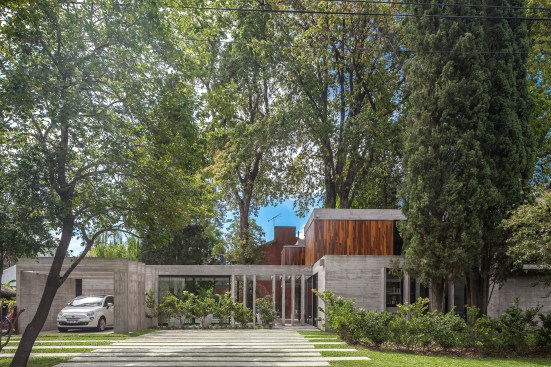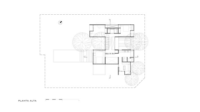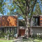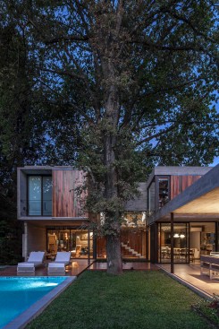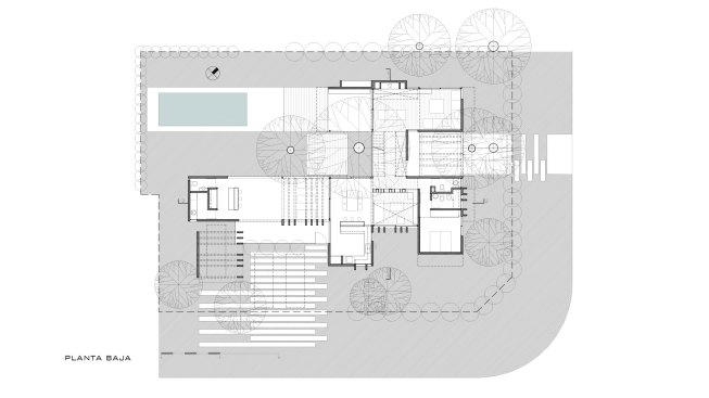 It is a corner lot in a closed neighborhood founded in 1968, with an important afforestation, to which the years have added an incalculable value. Different species of trees and shrubs combined give landscape value to the place throughout the year. The lot to intervene is crossed by a row of large oaks and varied species on one of their fronts and in the bordering lots.