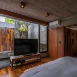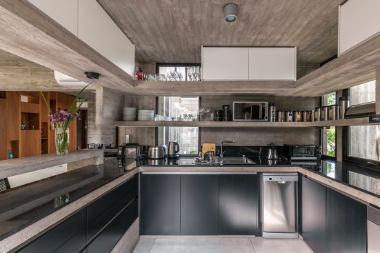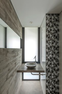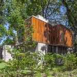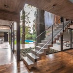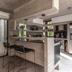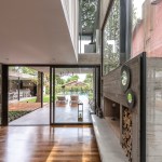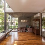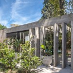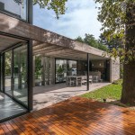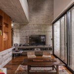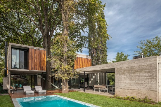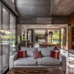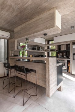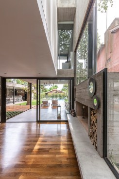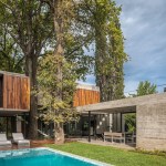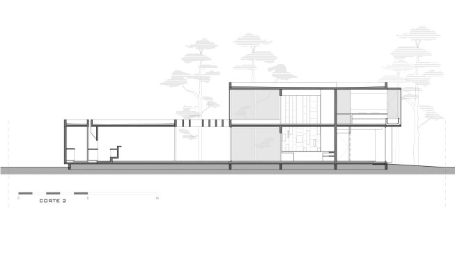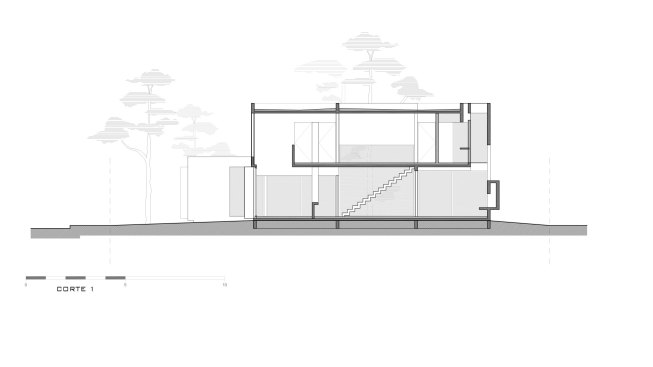 They requested a house of permanent use with the special requirement that it should make it possible to live intensely the relationship between interior and exterior spaces, so appreciated by the clients. Another request expressed was that, although they were interested in a house built with exposed concrete, they wanted the presence of the wood to break that monochromatic expression. Regarding the programmatic needs, the house had to have four bedrooms, one on the ground floor and one with an integrated bathroom and dressing room, a spacious living room with a fireplace, and a space of intense family life integrating the dining room, the kitchen and an intimate living room. It should also have a large gallery with a grill, places to eat and be outdoors, a pool and space to park three cars.