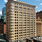 The 198ksf renovation has 137 dwellings with ground level retail. A Penthouse facility with terrace were added and compliment the 2nd floor restored banking offices, now used for administration and gathering space. Two fire escapes were removed from the east facade. A second interior enclosed stair from basement to roof was added. Other life safety improvements include a fire alarm and sprinkler system, diesel emergency generator, and emergency lighting and voice communication systems. Historic corridor windows and glass doors were upgraded with a fire rated overlay to separate the dwellings and stairs from the corridor. Elevators were repaired using original bronze and iron grilles.