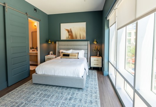 The Truman embraces technology with convenient electric vehicle charging stations and a state-of-the-art eGaming room. Lush outdoor areas feature immaculate landscaping, grilling stations, a fire pit, dog park and an open lawn area for community events like movie nights. A game area with a ping pong table and corn hole boards, a clubhouse community room, a dining lounge with a serving kitchen and a private event space give renters ample space to entertain. For those working from home, a coworking area with indoor and patio seating is available. There is also a bike repair area, bike storage pods and a rideshare lounge with a waiting area. The rideshare lounge, along with many other amenities, are available to residents 24/7.