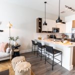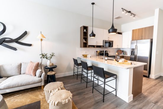 Designed by JHP Architecture and with interior designs by WORKSHOP | studio, The Truman features luxurious studio, one-, two- and three-bedroom units and is brimming with designer touches that enhance comfort. Expansive floor plans include upgraded kitchens with stainless steel appliances, granite countertops and two-toned, European-style cabinetry. Each apartment also offers soaking tubs, mudroom areas and attractive LED lighting, elegant Moen fixtures, convenient USB charging outlets and electronic locks with fob key entry. The development has achieved National Green Building Standard Green certification and all homes feature a minimum 10-foot ceiling with select floor plans offering 11- and 12-foot ceilings.