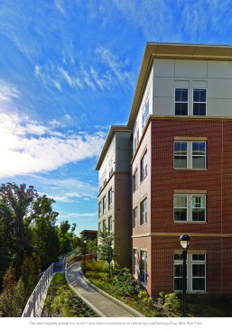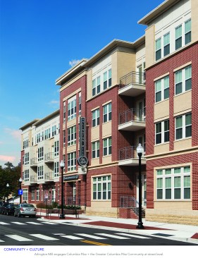 Arlington Mill Residencies is a one of a kind, 122- unit affordable housing development completed in 2014. With the Arlington County community and culture in mind, Arlington Partnership for Affordable Housing (APAH) collaborated with multiple public agencies as well as surrounding communities in order to conceptualize and develop the Residence. The affordable community serves as a four-story 5A building which includes 98–two and three bedroom units and includes 13 lower income units designed for formerly homeless individuals and families. Arlington Mill Residencies is now the first ground-lease of public land by Arlington County for private development making it the first example of the County’s “Public Land for Public Good” policy, adopted in 2013. The first redevelopment of an avenue site along Columbia Pike since its adoption of Form Based Code, and the first residential project in Arlington to be “district energy ready.”