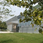 Armstrong’s fundamental business is the design and production of architectural building materials. This new exhibition center features the company’s products, fabrication methods and history. The building is a former factory retrofitted as a gallery that demonstrates how building materials shape space, light and form. Sections of the building’s floor, walls and roof are removed to create open space and admit natural light. The structure of the existing building is exposed and utilized as an armature for the new gallery infrastructure. The interiors incorporate Armstrong products in ways that explore new innovative uses. The building is located off the beaten path on the campus. To increase its visibility, a bold new façade with integral large-scale graphics wraps the original building. This perforated metal skin filters natural light to the galleries, frames views of sky and landscape and highlights the company brand.