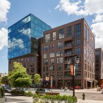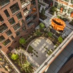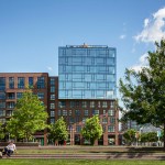 Arris takes its place on the most prominent site of The Yards, a new mixed-use riverfront neighborhood on the former grounds of the Washington Navy Yard Annex. Arris offers 327 rental apartments, including micro-apartments and affordable units integrated among the market-rate residences, some with direct views to the Yards Park, the Nationals Park baseball stadium, and the U.S. Capitol. The new 11-story building distills the existing character of the site and follows guidelines established by the Washington, DC State Historic Preservation Office. Arris’s five-story red brick base and metal detailing take their cues from neighboring industrial buildings converted to apartments and offices. Over 19,000 square feet of ground-level shopfronts wrap the building on its north, east, and south sides, weaving Arris into the new mixed-use neighborhood. The building’s E-shaped plan creates two west-facing residents’ courtyards that open to a mid-block pedestrian mews linking retail space along Tingey Street to the waterfront. A quiet refuge from the surrounding city, each courtyard is accessed directly from the building’s lobby and suite of ground-floor amenities, including a lounge with flexible seating, a catering kitchen, meeting rooms, and a game room. Above, a zigzag curtain-walled superstructure captures light and diagonal views. On the roof, a landscaped deck with an open-air swimming pool overlooks the Anacostia River. Pursuing LEED Gold certification, the building features green roofs on each of the three courtyard-bounding blocks, an on-site water retention system, low-flow fixtures, UV-blocking glass coatings, and an efficient HVAC system.