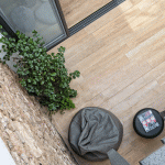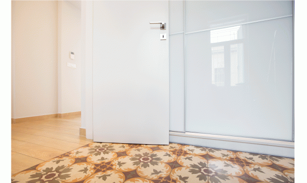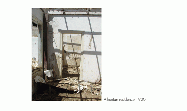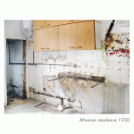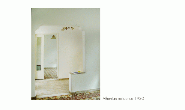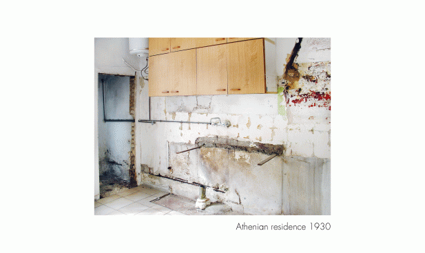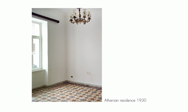 Introvert structure, symmetrically organized spaces, central axis of movement, are key components of the Athenian house typology, maintained and highlighted in this renovation proposal. The hallway is maintained as an entrance space and the living-room is optically integrated with the kitchen and the atrium via the continuous wooden floor. The wooden ceiling remains visible in the kitchen and is painted white in accordance with white lacquer kitchen surfaces. The bedroom is situated in the front of the residence with a floor made of old tiles, which are reused creating the atmosphere of a past era.