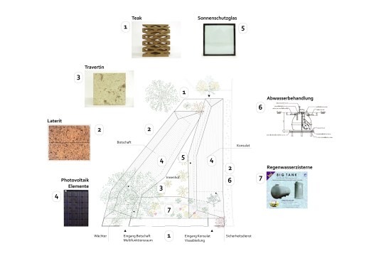 An embassy building has an important people connecting task to be relevant as a cultural space representing his home country. A respectful contact with the cultural exceptions from both countries leads to the development of a symbiotic space. Achievements of Austrian culture, research, technology and production are joining the specific Thai cultural way of life and construction traditions. Separate individual buildings are grouped themselves round common space, open to the exterior to provide a natural air cooling system. The large inner court planted with trees and shadowy follows the traditional Austrian court typology and offers an inviting atmosphere for qualitative cultural events.