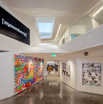 A common problem for multi-faceted creative advertising agencies is that staff and workgroups can easily become isolated into workplace islands of specialization. The problem can be acuter when the organization occupies multiple floors in a single building. In this case, the agency has grown by acquiring adjacent buildings as they became available over the last eight years. So spatial integration between existing and new buildings and through multiple floors to make the workplace feel as one and encourage collaboration is truly a three-dimensional problem.