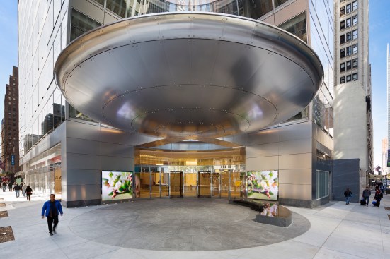 The canopy is clad in stainless steel and invites entry as it shelters a welcoming public space where pedestrians are invited to pause and enjoy the prospect of one of the city’s most treasured landscapes. On the opposite corner to the south, at 39th Street and Avenue of the Americas, a second rectangular-shaped stainless steel canopy announces a new street-level entry to the MTA subway concourse at the 42nd Street Bryant Park station. The façade above is composed of stainless steel spandrels and floor-to-ceiling glass in polished aluminum frames, organized according to a horizontal module of 10 feet that provides generous views to the park. The glass is low-iron insulating glass with a highly efficient low-E coating that provides increased thermal performance while maximizing transparency and visible light transmittance. The project utilizes energy-saving mechanical systems and co-generation and is designed to achieve LEED Gold certification.