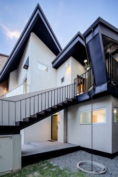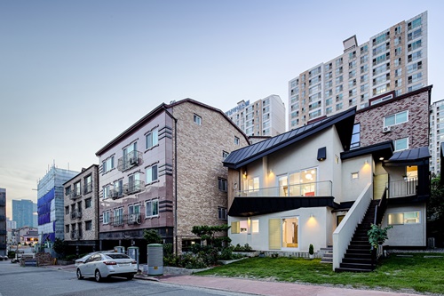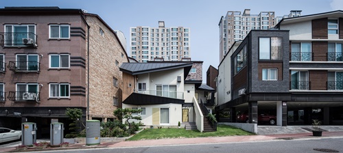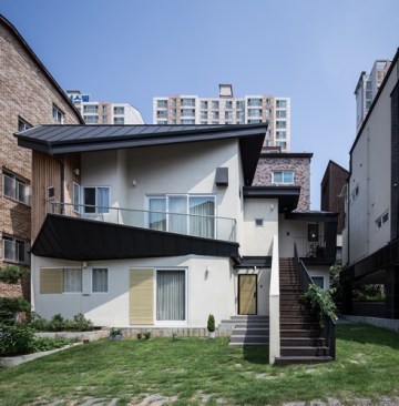 It seems that creating revenue by building a house becomes a trend. It can be seen that building a house with the maximum floor-area ratio and building coverage ratio within the legal limit is a wise way to build a house. A house irrelevant seemingly was placed at the Yongin-si, Gyeonggi-do. Although the house is relatively smaller than other neighboring big multi-household houses, the shape of stably standing shoulder to shoulder with them is impressive. The architect hopes this house born by the desire of the client who wanted not to build a house with maximum values, but to build a house for life to become a fresh message to the gray city.