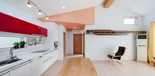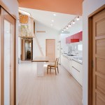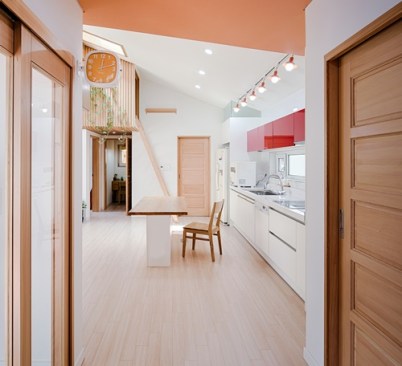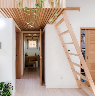 It is difficult to build a character at the house where two floors were stacked. Because the house was easy to become a multi-household house resembling an apartment, the important objective was to design a satisfying house with an equivalent feeling.