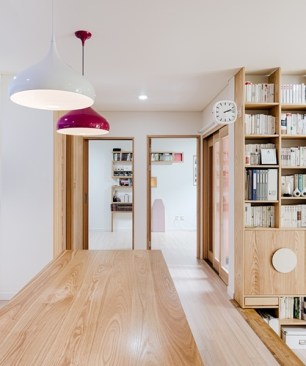 In the Barbarella house situated in the Yongin-si Gyeonggi-do, two households, who are a family, is living and sharing. The second floor where the parents and younger brother live has no difference with the layout of the first floor and features an impressive feeling of space by a pitched roof. There are full of rest and composure by a space for the father whose hobby is playing go, a small terrace for spending some quality time, and so on. Also, there are an attic space for future grandchildren and a triangle attic for the younger brother who needs an individual space. The house having an identical floor plan on each floor is easy to become a simple space like an apartment. The main objective was to design a satisfying house with an equivalent feeling by considering two different life patterns of households. At the first floor for the daughter and her husband, there are a main room that can be divided by a fake wall for future baby, a living room, a kitchen, a bathroom, and others. The kitchen and the living room, which have a level difference, are not only filtering the exposed appearance from an open garden, but also resolving crampedness by a low ceiling and becoming a space for a discussion or meditation with reading by setting a bookshelf at the place where the level difference exists. Considering the possibility that the daughter and her husband is sent to work abroad in 4 ~ 5 years, the exterior moving paths of two households were separated, and there was no shared interior moving path to be rented.