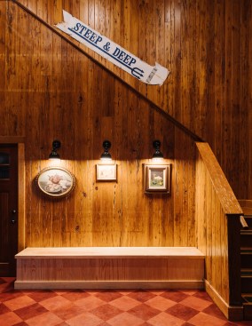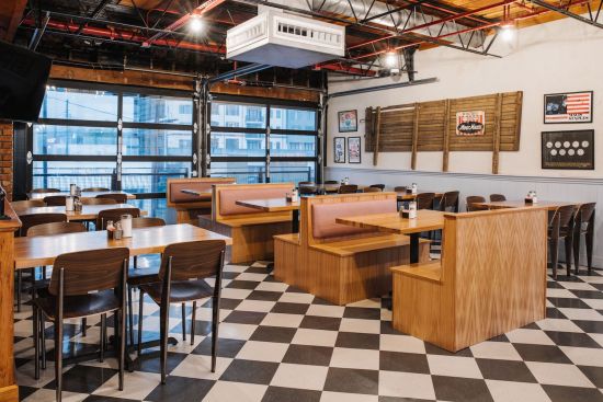 The “Steep and Deep” building, as it was known for years, is located in the Homewood neighborhood of Birmingham, and is layered in many ways. The basement level is home to The Red Lion, a divey local institution that has occupied the same space since 1962. The main and upper levels have seen a variety of retail and restaurant tenants come and go over the years, including a ski and dive shop by the name of Steep and Deep and a Chinese restaurant. Programmatically, Square Feet Studio was tasked with preserving The Red Lion while converting the upper two levels into one restaurant with a commercial kitchen, full service bar and dining. The clients had plans to expand their popular Oxford, MS, concept, Big Bad Breakfast, and the team soon learned that this building would house the newest outpost. Careful analysis of the existing conditions and structure of the building gave way to a series of architectural solutions that addressed the design problem of needing substantial structural intervention and increased square footage. The design team recognized voids in the building that could be infilled with program, a strategy they referred to as “filling in the gaps.” This approach allowed them to purposely keep what was interesting about the existing structure while providing the functional space and structural reinforcing needed to bring the building back to life. The result is a brick masonry building that is a patchwork of materials, both new and old. Architectural steel channels are introduced to frame large new openings and provide a subtle contrast to the masonry exterior. Roll-up doors at the north and south elevations allow for a fluid connection between the interior and exterior spaces. The existing slate roof and building signage is preserved to acknowledge the buildings history. And most importantly, The Red Lion remained open during the duration of construction. This project is a collaboration between John Michael Bodnar of Fresh Hospitality and James Beard Award-winning Chef John Currence of City Grocery Restaurant Group.