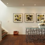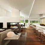 Eleven years ago, the clients bought a not-quite-perfect home in a perfect neighborhood, knowing that they would eventually remodel. Constructed in the 1970s, the home’s main floor was divided into four quadrants separated by floor-to-ceiling walls. The kitchen and family room were at the back of the house facing north and east, so the family felt as though they were living in a constant state of darkness. Two years ago, with both kids in college, the couple decided it was time to renovate. After bonding with a team of architects who shared their appreciation for modernism, the clients commissioned them to transform the main floor into a light-filled space for entertaining, cooking, and relaxing. To capture the natural light as it moves over the house, the architects removed every wall but one, and designed a single, narrow steel post to support the load. They moved the dining room to the back of the house and the living room to the front. Between the living and dining areas, the architects placed a dramatic, cantilevered open fireplace finished with Venetian plaster, and a floating hearth and bench made from gun-blued steel. They designed a long narrow kitchen with custom cerused walnut and white lacquered cabinets, an authentic, Italian-style wood-fired pizza oven, and a stunning center island of Calacatta marble measuring four feet wide by 21 feet long. Now that the renovation is finished, the house is a magnet for family and friends who love stopping by for glass of wine, a slice of pizza, and a dip in the swimming pool.