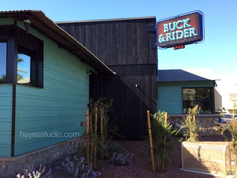 Buck & Rider is a new casual-upscale seafood restaurant in Phoenix, Arizona. The original inspiration was a traditional prairie home with sleeping porches combined with a charming off-white Australian boathouse where one feels transported to the coast; the architecture was to be reminiscent of the Arcadia ranch homes featuring citrus groves, creating a connection to the indoors and outdoors. One of the goals was to build a new restaurant that feels like it has been tucked into the Arcadia neighborhood for decades, with the original palette of off white paint to set off the authentic materials of charred wood, siding, and stone that were selected. The design challenge was to take a relatively small lot and maximize both the parking spaces and the number of seats for the restaurant while remaining true to the design.