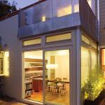 Schwartz’s material choices reflect his habit of “suggesting sustainable and nontoxic materials, whether a client asks for them or not.” Refinishing the kitchen’s original wood floors saved resources and gave the room continuity. For cabinet doors and drawer fronts, he chose local, responsibly harvested domestic walnut. The room is bathed in abundant natural light during the day, with energy-efficient fluorescents providing ambient lighting after dark. With most of the glazing facing west, operable clerestory windows help manage the room’s microclimate by venting hot air; discreet rolling shades do the rest.