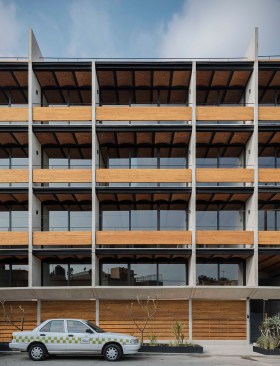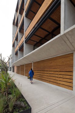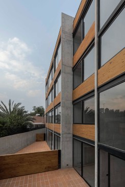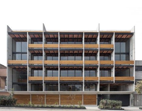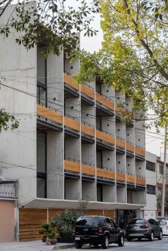 This apartment building by Dellekamp Arquitectos is located in Benito Juárez, Mexico City. It was conceived of as a housing development for young, middle-class families. The main premise of the project was to design an economical structure that could also offer above-average materials and spaces.