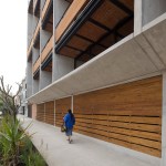 Each apartment is divided into two modules, one containing the living room, dining room, and service core, and the second containing a room with a closet and bathroom. The project was stitched together with options to have one, two or three bedroom apartments. The apartments facing the street receive an exterior balcony, while interior units are offered a roof terrace.