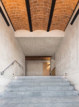 Perhaps the most recurrent theme that emerged in the design process was the need to achieve material honesty by embracing a set of clearly articulated material systems: brick vaults, concrete walls, terrazzo floors, and railings and walls made of laminated wood.