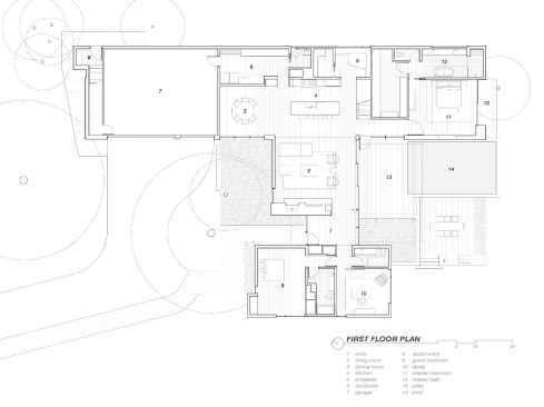 0.375-acre site, placing the entry courtyard around a stand of live oaks