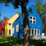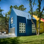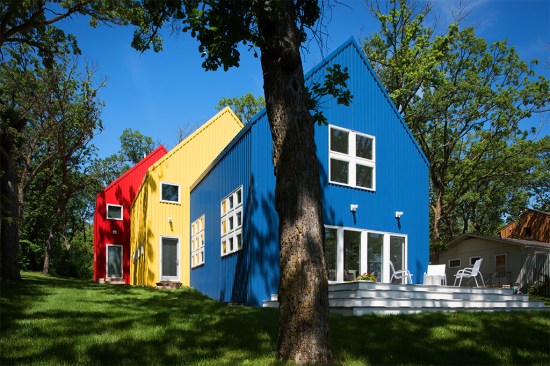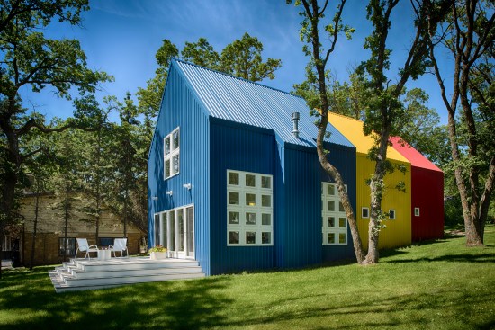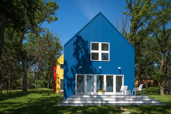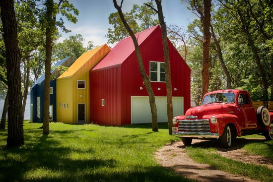 Every once in a while, a client comes along that wants to talk about design. In this case, the Cabin on Pelican Lake embraces that scenario and entertains a client that spent their entire life in the design business. At the same time, they have had the opportunity to embrace their Scandinavian heritage through travel and various business opportunities, influencing their design sensitivities for simple, yet beautifully executed ideas: platonic shapes (triangle gables, cube forms and barrel volumes), primary colors and minimalistic materiality. Equipped with a sketch of “three colored cubes” and a photo of a traditional Oceanside fish camp, the client challenged the design team to “make something of this.” Graphic in nature, bold in form and “the brightest color in the box,” the Cabin on Pelican Lake is a collaborative design effort, celebrating the very best in design.