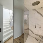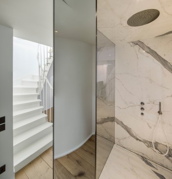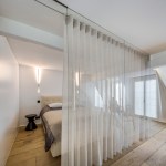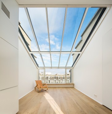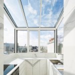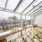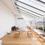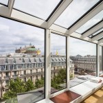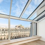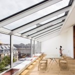 An important part of this project involved the replacement of the glass roof, requiring an important effort in terms of design, follow-up and budget, comparable to one for a single-family detached house, according to Vincent Parreira. The new roof has the exact same dimensions of the one built in 1899, and respects the placement of the glazed parts on the façade and roof. In spite of this continuity in dimensions, the architect of the “Bâtiments de France” (official architectural review board) had to be convinced of the justification for such a project, as the project’s architect sought to develop a very contemporary style, rather than reproduce a more traditional structure. Double glazed, anti-intrusion, low-e, slightly reflective glass has been inserted into the molded metal frames. Vagaries emerged as the work progressed, of the sort specific to any rehabilitation project. The studio had suffered a fire and water damage, which resulted in a deterioration of structure of the floor, rebuilt along with the glass roof, whose structure also serves as the structural framework and façade. In this context, the cost of the works was evaluated according to different parameters, the scope of which goes well beyond the mere supplying of construction materials and their assembly. This accounting includes the accessibility of the construction site, project scaffolding, the protection of existing structures, the time frame required for obtaining the building permit in the context of a landmarked district and an intervention in an occupied environment of offices and shops. All the above are part of a greater than average construction budget to be sure, but hardly an unbridled one, Parreira insists. Two main companies oversaw construction, a general contractor, able to select its sub-contractors, and an ironworks, in charge of building the glass roof. This combination ensured the quality of the structural work and of the very refined details of the finishing work as well, the point in the project where the positions concerning today’s dwelling are most clearly expressed.