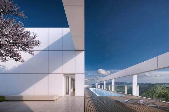 The massing and proportions of the building are in harmony with the existing context, creating an articulated lower and upper tower volume. The lower part of the building will have two apartments per floor and the upper portion is designed as one large apartment unit per floor, creating an expansive free open plan. Luxury amenities, including an exterior swimming pool and roof deck, are located on the top floors of the tower with views towards Taipei 101.