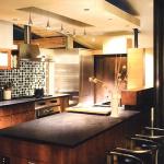 Almost like a theater in the round, this kitchen gives the owner, who is an enthusiastic cook and host, an arena for his culinary legerdemain. At the same time, the kitchen is designed to keep guests at a safe distance from all the slicing and sauteing. Best of all, it’s a kitchen that performs equally well as center stage for daily life and as a dramatic backdrop for the owner’s parties.